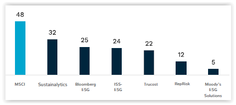 Investors predominantly use MSCI, Sustainalytics, Bloomberg ESG, and ISS-ESG ratings providers. Just 14 investors don’t use or disclose which ESG Ratings and Research providers they use.